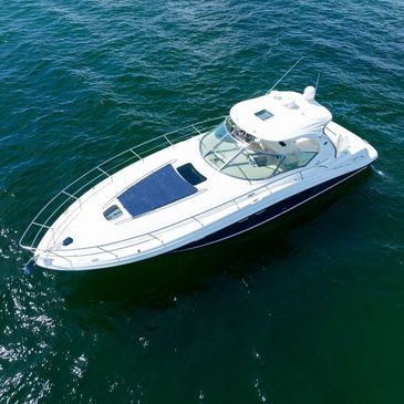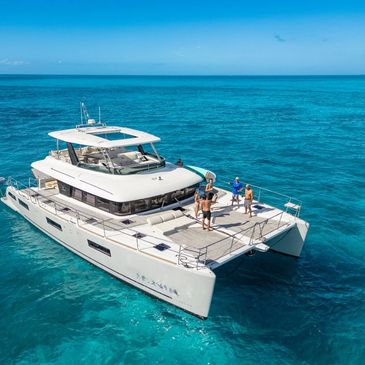 The yacht features an amazing four staterooms and four bathrooms, accommodating up to 8 people overnight as well as 12 on a day charter.